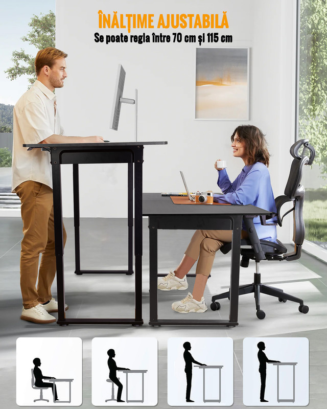 Inaltimea biroului se poate regla intre 70 de centimetri si 115 centimetri cu ajutorului controlerului digital .