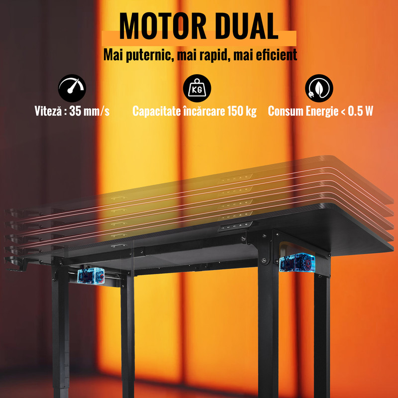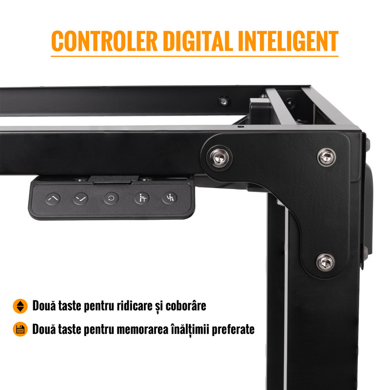 Te ajuta sa setezi rapid si simplu inaltimea biroului, are de asemeni 2 functii de memorare pentru a-ti salva inaltimea preferata.