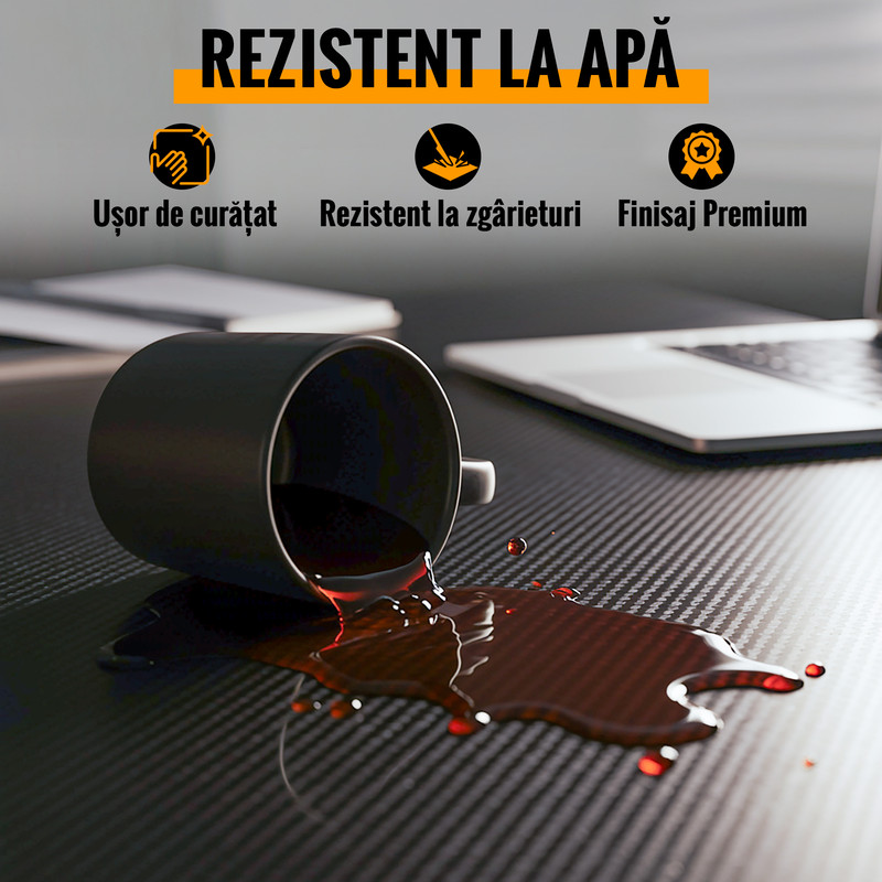 Suprafata inovatoare este rezistenta la zgarieturi si respinge lichidele, protejand masa impotriva petelor si deteriorarii.